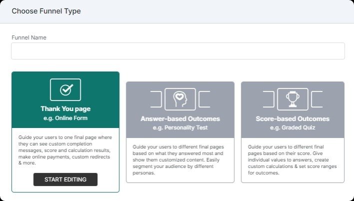 Once you have selected the template, now choose a specific funnel type. It can always be changed when working on it.